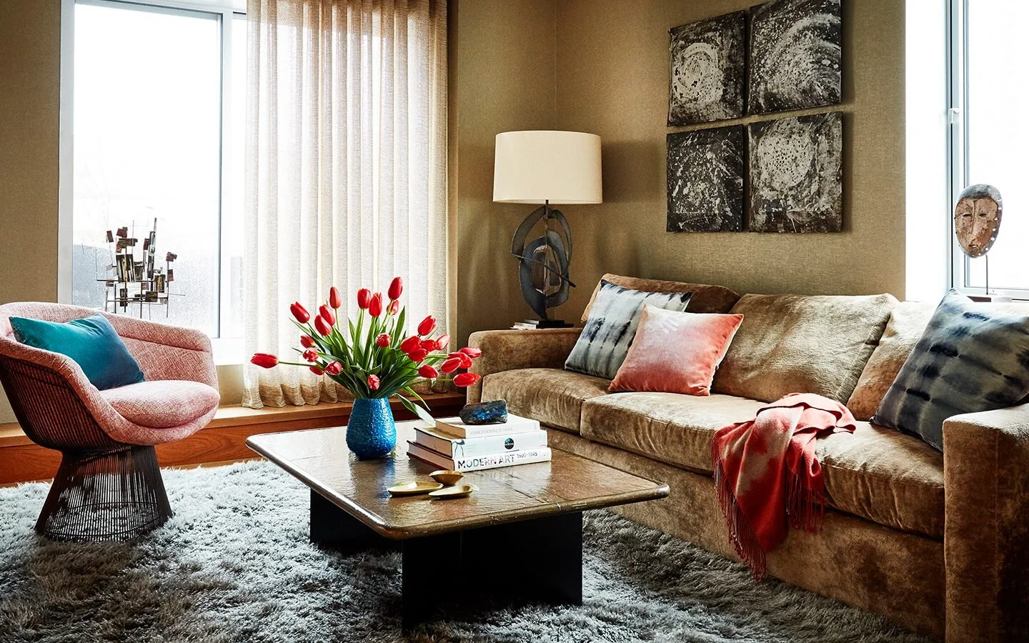 Amy Lau opened her eponymous firm in 2001 in New York City and has since been creating unique and lively interiors. Lau has been lauded by the top interior design awards and publications for her residences. Her spaces look to the future and quote the past, with forms and textures that simultaneously reflect nature and evoke the future. Like much of mid century design, Lau’s work balances this place in time and texture, mixing sleek, perfectly formed pieces with natural materials. Her tight color schemes create spaces that look like they deliberately and specifically belong together.